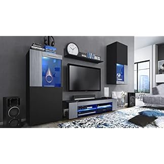467,13 €Produkt kaufenVladon Wohnwand Movie, Anbauwand bestehend aus 1 TV-Board, 2 Vitrinen und 1 Regal, Schwarz matt/Schwarz matt/Avola-Anthrazit, inkl. LED-Beleuchtung blau (Gesamt: 300 x 190 x 39 cm)