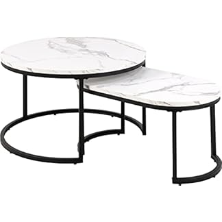 AC Design Furniture Spencer Couchtisch 2er Set für Wohnzimmer, Wohnzimmertische in Weißer Marmoroptik mit Schwarzem Metallrahmen, Kaffetisch, Wohnzimmer Set, Satztisch Rund