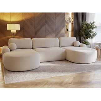 98,00 €Produkt kaufenGRAINGOLD Aurio Ecksofa mit Schlaffunktion & Bettkasten 347×177 cm, U-Form Sofa mit Stauraum, Schlafcouch für Wohnzimmer, Bouclé-Stoff, 5-Sitzer Wohnlandschaft, Modernes Design (Creme)