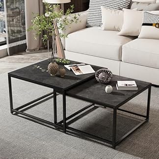 209,00 €Produkt kaufenFATIVO Couchtisch Schwarz Marmor Wohnzimmertisch: beistelltisch 2er Set modern sofatisch quadratisch mit metallgestell für Wohnzimmer groß:65×65×40cm klein:60×60×34cm