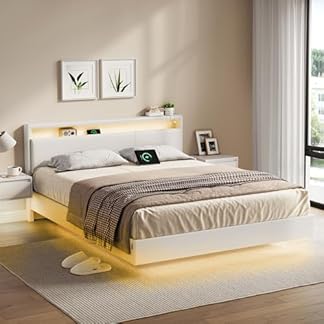 229,99 €Produkt kaufenVASAGLE Bettgestell, Doppelbettgestell, 160 x 200 cm, schwebender visueller Effekt, Bett mit LED-Beleuchtung, hohem Kopfteil, Ladestation, modern, wolkenweiß RMB865W01