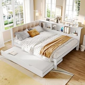 299,99 €Produkt kaufenLED Tagesbett Doppelbett 140×200 cm mit Ausziehbett 90×190 cm und USB, Schlafsofa Sofabett mit Gepolstertes Kopfteil, Schlafcouch Holzbett Bettgestell mit Lattenrost, Weiß, Ohne Matratze