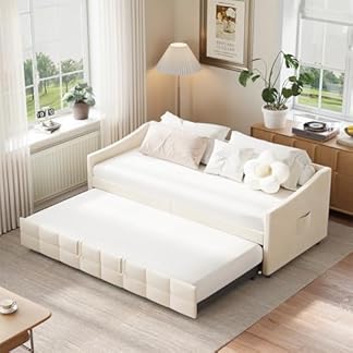 179,99 €Produkt kaufenTagesbett 90/180×200 cm mit Gästebett, Ausziehbett mit Lattenrost, Bett Ausziehbar zum Doppelbett, Schlafsofa für Erwachsene 2 Personen, Creme (Creme-B, 90/180×200 cm)