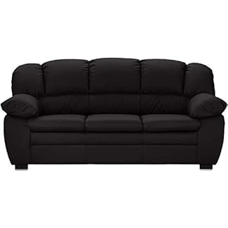Mivano 3-Sitzer Sofa Casino, Große Ledercouch mit moderner Kontrastnaht, 191 x 88 x 92, Kunstleder Schwarz