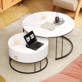 259,99 €Produkt kaufenokwish Runden Couchtisch 2er Set, Moderne Wohnzimmertisch mit Marmoroptik, Hochglänzend Satztisch mit Stauraum, beistelltisch rund, für Wohnzimmer, Balkon und Büro, Metallgestell, Weiß und Schwarz