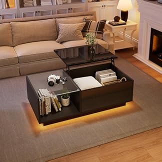 329,99 €Produkt kaufenokwish LED-Couchtisch mit Hochglanz-Oberfläche,Beistelltisch mit verstecktem Stauraum und Ablagefach,höhenverstellbarer Kaffeetisch,Schwarz