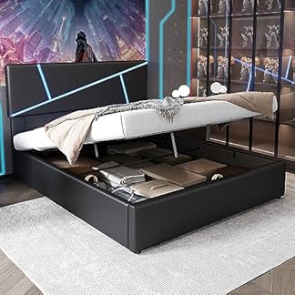 299,99 €Produkt kaufenokwish Polsterbett 90×200 cm Jugendbett mit LED-Kopfteil, Bett mit Stauraum, Stauraumbett hydraulisches Funktionsbett, Gepolstertes Bettgestell mit Lattenrost, Schwarz Kunstleder, Ohne Matratze