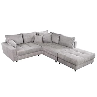 119,95 €Produkt kaufenriess-ambiente.de Moderne Wohnlandschaft Kent 220cm grau Samt | Ecksofa Federkern inkl. Hocker und Kissen, Ecksofa mit Schlaffunktion | Sofa in L Form