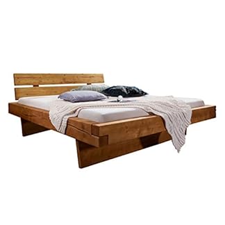 SAM Balkenbett Bennet 160x200cm, Fichte honigfarben, Holzbett massiv, gebeizt + geölt, geteiltes Kopfteil