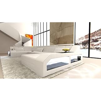 1849,00 €Produkt kaufenSofa Wohnlandschaft Arezzo U Form Leder – mit LED Beleuchtung, verstellbare Kopfstützen, Recamiere/Lederfarben wählbar/Ausrichtung Ottomane wählbar (Ottomane rechts, White)