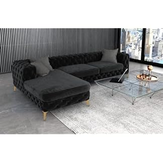 2199,00 €Produkt kaufenSamtsofa Cordoba L Form kurz in Chesterfield Optik Ecksofa mit Bezug aus Samt Sofa (Schwarz, Ottomane Links)