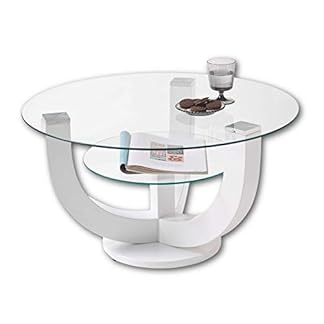 1707,99 €Produkt kaufenStella Trading DENVER Glas Couchtisch rund in Hochglanz weiß – stylisher Glastisch mit Ablage & geschwungenem Gestell für Ihren Wohnbereich – 80 x 40 x 80 cm (B/H/T)