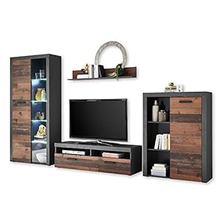 Angebot! Ursprünglicher Preis war: 1488,99 €1409,95 €Aktueller Preis ist: 1409,95 €.Produkt kaufenJONES Vintage Wohnwand Komplett-Set in Old Wood Optik, Betonoxid – Retro Schrankwand für Ihr Wohnzimmer – 320 x 190 x 40 cm (B/H/T)