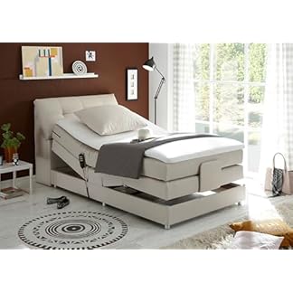 549,99 €Produkt kaufenPALERMO 2 Boxspringbett 120×200 elektrisch verstellbar, Sand – Bequemes Einzelbett mit dekorativer Steppung & Komfortschaum Topper – 120 x 127 x 234 cm (B/H/T)