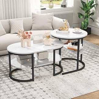 73,30 €Produkt kaufenBHFFTHK Couchtisch 2er Set,2 in 1 Wohnzimmertisch mit stauraum,Moderne Sofatisch Couchtisch Rund und Rechteck in Marmor Optik,Metallrahmen satztische fürs Wohnzimmer,Beistelltisch Set