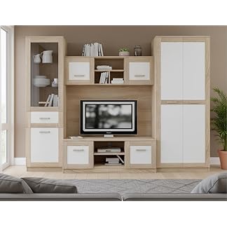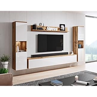 797,88 €Produkt kaufenModerne Entertainment Center Wohnwand mit 2x Schränken PARMA 4-teiliges Möbelset in Wotan Eiche/Weiß glänzend hängend oder stehend Lowboard Wandboard Stilvolle Wohnzimmer Aufbewahrungslösung