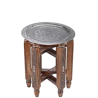 65,61 €Produkt kaufenMarokkanischer Runder Tisch Couchtisch Halab ø 40cm rund | Orientalischer Wohnzimmertisch mit klappbaren Vintage Gestell aus Holz in Braun | Tablett Mehdia Klapptisch ist aus Messing in Silber