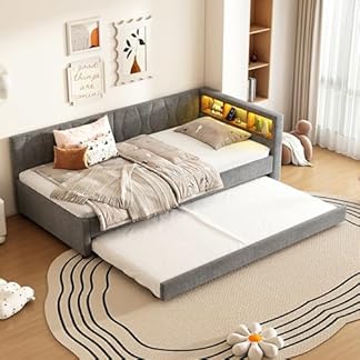 269,99 €Produkt kaufenLAKFEW Schlafsofa Kinderbett 90×200 mit LED-Licht und USB-Buchse, Schlafcouch Ausziehbar mit Ausziehbarem Bett, Tagesbett mit Lattenrost, Schlafzimmer Möbel, Ohne Matratze, Linen, Grau