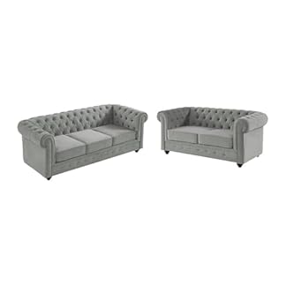 1252,99 €Produkt kaufenVente-unique-Couchgarnitur 3+2 – Samt – Hellgrau – Chesterfield