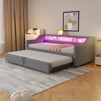 319,99 €Produkt kaufenPolsterbett Ausziehbares Tagesbett 90/180×200, Funktionsbett mit LED-Licht&USB-Buchse&Staufach, Einzelbett Doppelbett Schlafsofa Jugendbett Bettgestell mit Lattenrost, Linen, Ohne Matratze, Hellgrau