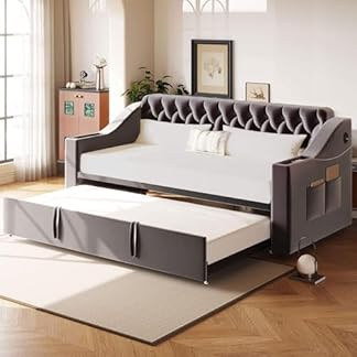 289,99 €Produkt kaufenDaybett, 90x200cm, Tagesbett, Schlafsofa, mit 2 Schubladen, USB + Typ C, Mehreren Ablagefächern, Bett mit Lattenrost (ohne Matratze), Leinen (Beige mit Schubladen)