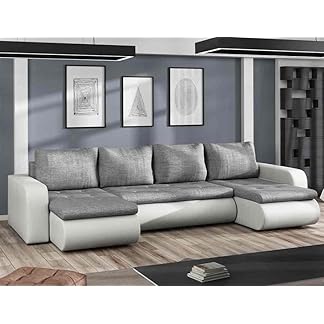 192,90 €Produkt kaufenEasy4You Brooklyn Grau und Weiß Kunstleder Ecksofa U-Form 315 cm mit Schlaffunktion und Stauraum – Schlafsofa mit Bettkasten – Moderne Wohnzimmermöbel – Stoff: Lux32/Soft17