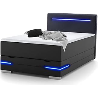 58,99 €Produkt kaufenwonello Boxspringbett 120×200 mit Bettkasten, LED Beleuchtung und 2X USB Anschluss – gemütliches Bett mit einzigartiger Optik – Stauraumbett 120 x 200 cm beleuchtet schwarz mit Matratze und Topper