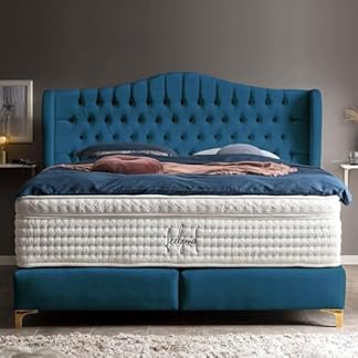 Boxspringbett Maison 180×200 Samt-Stoff, mit Visco-Topper, Füße Gold-Optik, Hotelbett, ohne Bettkasten, 7 Zonen Taschenfederkern-Matratze, Aufbau KOSTENLOS (Petrol, 180×200 cm mit Topper)