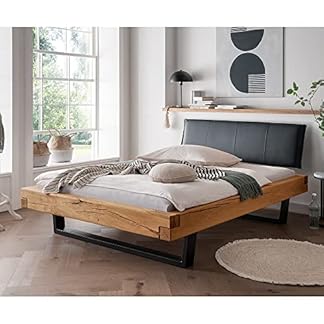 1733,44 €Produkt kaufenLomadox Doppelbett Ehebett Bett Echtholz Massivholz, 180×200 cm, Eiche massiv, Holzkopfteil, Schwarze Metallkufen, B/H/T ca. 198/88/228 cm