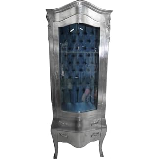 1899,90 €Produkt kaufenCasa Padrino Barock Vitrine Silber mit Azzurfarbenen Innenstoff – Antik Stil Möbel