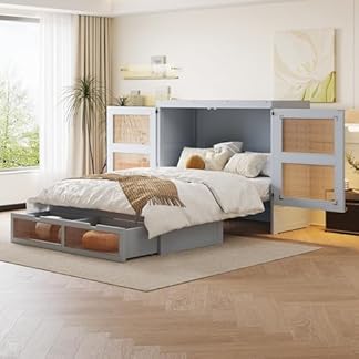 219,99 €Produkt kaufenSchrankbett 140 x 200 cm, Wandbett mit Lattenrost, Wandklappbett, vertikales schrankbett mit Lattenrost, mit Stauraumschubladen, Rattan-Design, Holzbetten, Jugendbetten, Einzelbetten, Grau