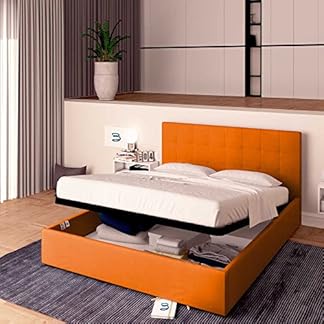 1071,00 €Produkt kaufenBaldiflex Einzelbett mit Stauraum Modell Dublino aus Kunstleder, Lattenrost, für Einzelbettmatratzen 140 x 200 cm, elegantes Kopfteil, Farbe Orange