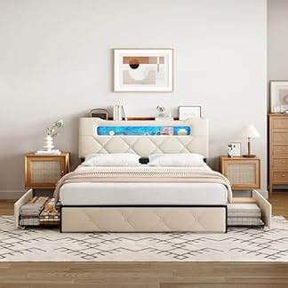 159,90 €Produkt kaufenLLODERY Schubladenbett Polsterbett 140×200 mit LED, Stauraumbett mit 4 Schubladen, Boxspringbett mit Lattenrost, Modernes Jugendbett, Doppelbett, Beige, Velvet