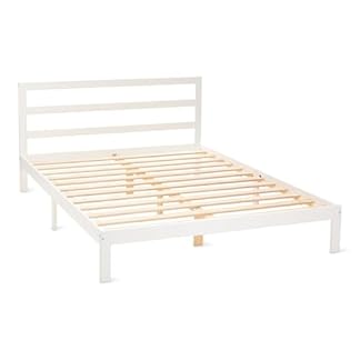 Amazon Basics Kingsize-Bettgestell mit Kopfteil, Massives Kiefernholz mit Lattenrost, 160cm x 200cm, King-Size, Weiß