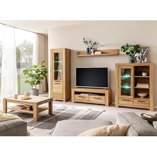 2474,74 €Produkt kaufenLomadox Wohnwand Wohnmöbel Set Eiche teilmassiv geölt 5-teilig, 1 Vitrine, 1 Wandboard, 1 Lowboard, 1 Highboard, 1 Couchtisch, inkl. LED-Beleuchtung | Echtholz/Massivholz/Furnier