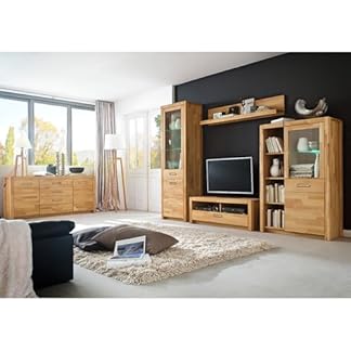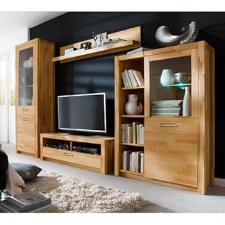 1124,95 €Produkt kaufenLomadox Wohnwand TV-Wand, Kernbuche massiv geölt keilgezinkt, 4-teilig, Echtholz/Massivholz, 1 Highboard, 1 Lowboard, 1 Vitrine, 1 Wandregal, inkl. LED-Beleuchtung