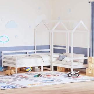 Betten & Zubehör-Betten & Bettrahmen Tagesbett und Bank Set mit Dach ohne Matratze Weiß 90×200 cm