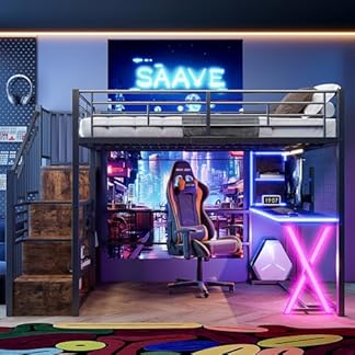 156,88 €Produkt kaufenLED Hochbett 140×200 cm mit Schreibtisch, Bücherregal, Treppe und Kleiderschrank, Etagenbett mit Lattenrost, Funktionsbett Metallbett Spielbett Kinderhochbett Jugendhochbett, ohne Matratze, Schwarz