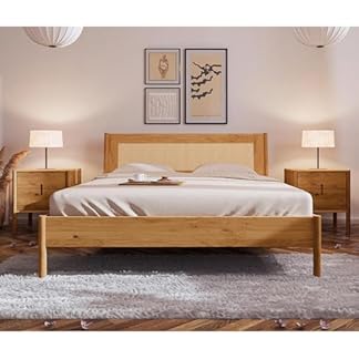 1203,19 €Produkt kaufenLomadox Schlafzimmer Set Schlafzimmermöbel Eiche massiv geölt mit Rattangeflecht 3-teilig, 1 Bettgestell 200×200 mit Rattankopfteil, 2 Nachttische