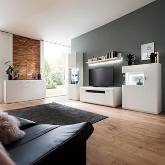 1588,47 €Produkt kaufenLomadox Wohnwand TV-Wand weiß matt modern 4-teilig mit 1 Vitrine, 1 Lowboard, 1 Highboard, 1 Regal, inkl. LED Beleuchtung