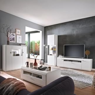1922,77 €Produkt kaufenLomadox Wohnwand TV-Wand weiß matt modern 4-teilig mit 1 Highboard, 1 Vitrine, 1 Lowboard, 1 Couchtisch, inkl. LED Beleuchtung