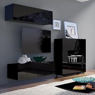 355,93 €Produkt kaufenLomadox Wohnwand Anbauwand schwarz Hochglanz 4-teilig Modern, mit 1 TV-Lowboard, 1 Hängevitrine, 1 Hängeschrank, 1 Highboard