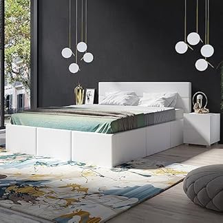 1258,02 €Produkt kaufenLomadox Schlafzimmer Set 5-teilig mit Bett 160x200cm, 2 Nachttische, Kleiderschrank 2-TRG., Highboard in weiß Hochglanz mit weißem Kunstleder Modern