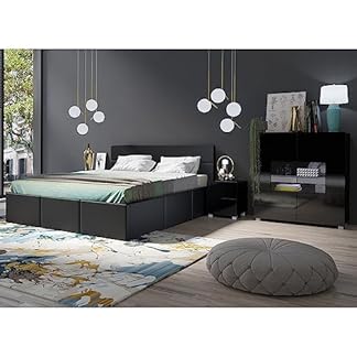 825,51 €Produkt kaufenLomadox Schlafzimmer Set 4-teilig mit Bett 160x200cm, 2 Nachttische, Highboard in schwarz Hochglanz mit grauem Kunstleder Modern