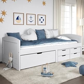 AJJHUUKI Betten & Zubehör-Betten & Bettrahmen-Tagesbett mit 5 Schubladen IRUN Weiß 90×200 cm Massivholz Kiefer