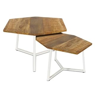 Amago home Couchtisch 2er Set Beistelltisch Satztisch Wohnzimmer Massivholz Tischplatte vollmassiv Farbe Paris – Tabacco reinweiss