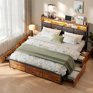 572,98 €Produkt kaufenJOROBURO Polsterbett Metallbett 140 x 200 cm mit Stauraum, Doppelbett mit LED und USB Ladefunktion, Stauraumbett mit 4 Schubladen und Staufach, Jugendbett Funktionsbett mit Lattenrost, Schwarz, PU