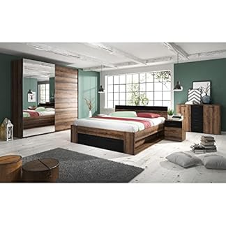 1488,98 €Produkt kaufenLomadox Schlafzimmer Möbel Komplett Set Liegefläche 180×200 cm. in Monastery Eiche Nb mit schwarz