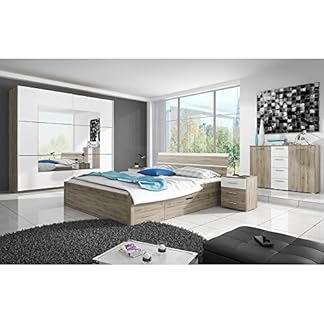 1314,05 €Produkt kaufenLomadox Schlafzimmer Möbel-Komplett Set in Sanremo Eiche Nb. mit weiß Liegefläche 160×200 cm