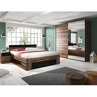 1297,20 €Produkt kaufenLomadox Schlafzimmer Möbel Set mit Doppelbett, Schwebetürenschrank, Kommode und 2 Nachttischen in Monastery Eiche Nb. mit schwarz Liegefläche 160×200 cm